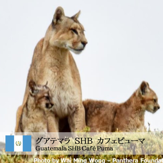 また、アラビカコーヒーの生産地域である中米の森林地帯は、ジャガーやピューマといった大型猫科動物の棲息地でもあります。この野生動物とコーヒー農園の共存を模索する取り組みの一つとして、野生ピューマの棲息地となる原生林の保護などを呼びかけるとともに、コーヒーの売り上げの一部(ポンドあたり10セント)を、同地の野生ピューマの保護団体である、パンテラ・グアテマラに寄付しています。